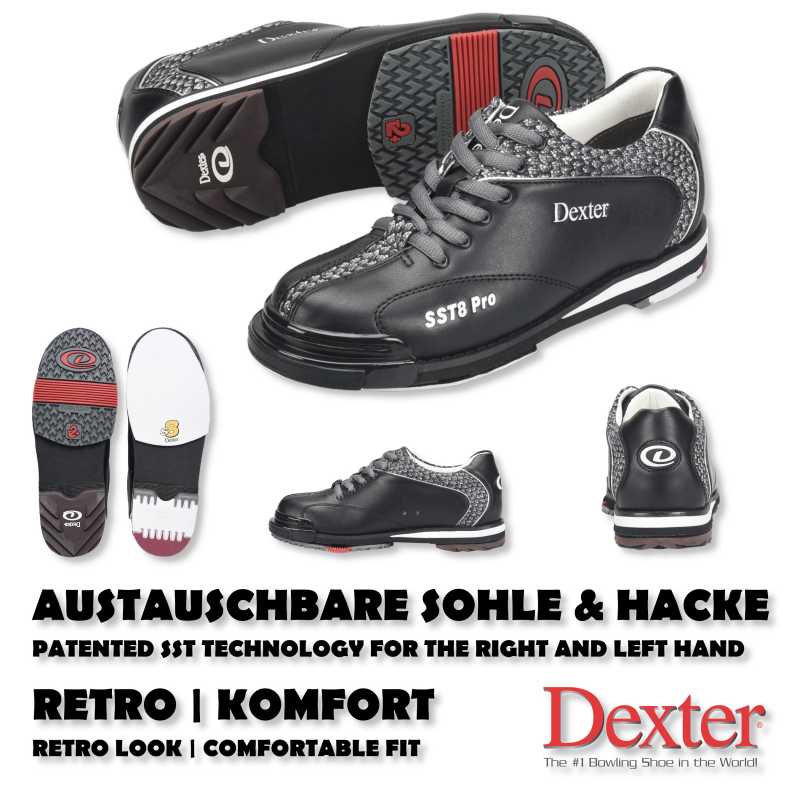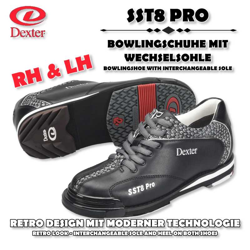 ★★ Dexter - SST 8 Pro - Schwarz / Grau - High Quality Bowlingschuhe mit Wechselsohle und Hacke ★★